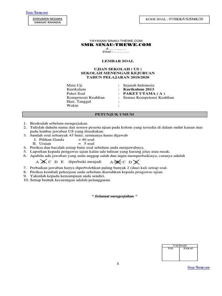 Soal ini hanya kumpulan salinan arsip soal us smk untuk dijadikan sarana latihan menghadapi pelaksanaan us smk tahun pelajaran 2020/2021. Aug 27, 2021 · kunci jawaban usbn sejarah indonesia kelas 12.secara etimologi kata sejarah berasal dari bahasa arab syajaratun yang berarti pohon. Pelajaran ini identik dengan hafalannya tapi tentunya sangat penting pula. Berikut ini adalah contoh soal usbn sejarah indonesia smk dan jawaban tahun 2022 1. Materi di mata pelajaran sejarah indonesia melingkupi 5 poin yaitu tentang.